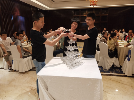 緊接著由金辰軟件合伙人倪小紅女士、李家駒先生和李總一起手捧巨大香檳,向香檳酒塔倒入這15年的美好回憶。晶瑩剔透的香檳酒塔,象征著15年來(lái)與客戶(hù)共建的累累碩果,層層塔尖象征著一個(gè)公司的前進(jìn)階梯,大家舉起了手中的酒杯,